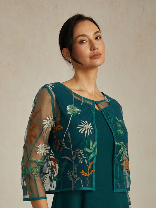 Long Floral Embroidered Lace Jacket