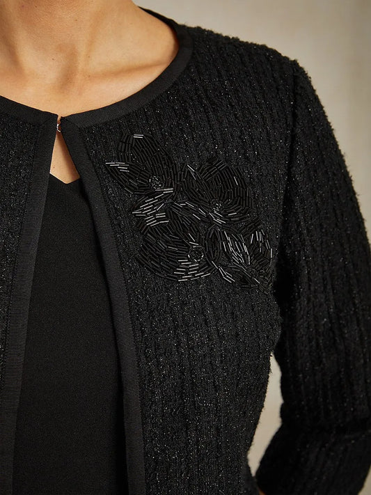 Elegant Stretch Beaded Jacket with Two-Way Styling