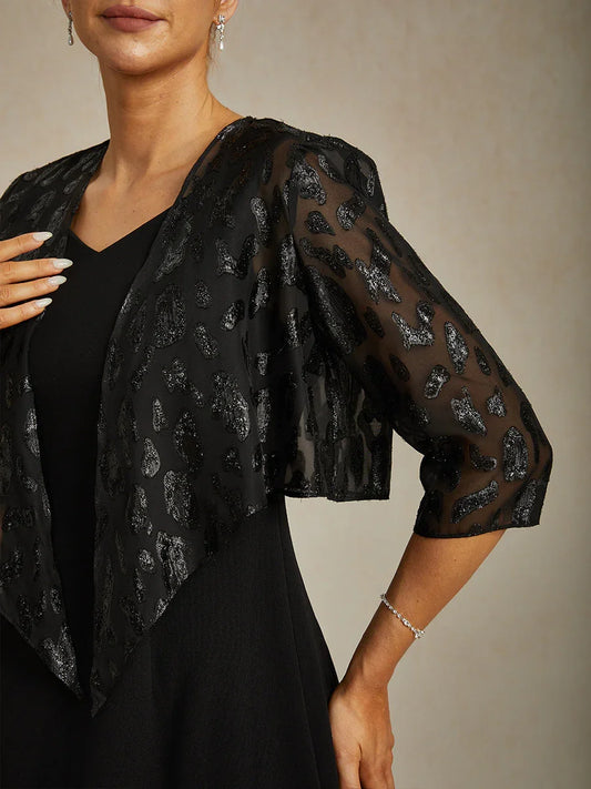 Chic Leopard Chiffon Shrug with Metallic Threads