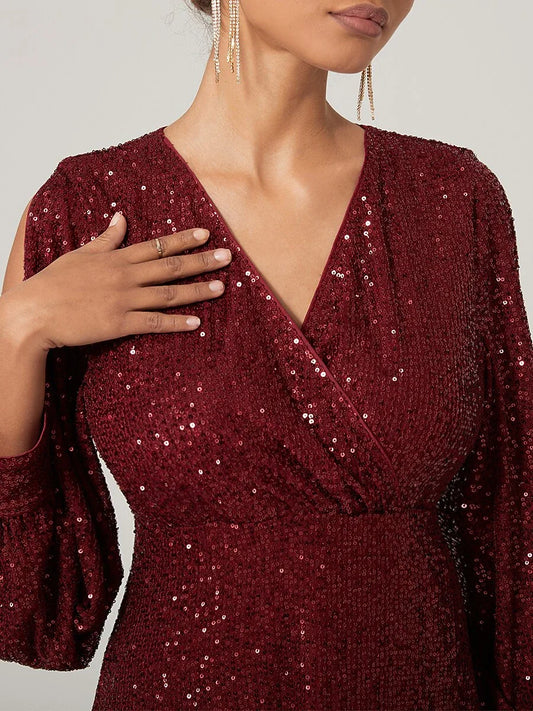 Elegant V-Neck Cold Shoulder Sequin Dress