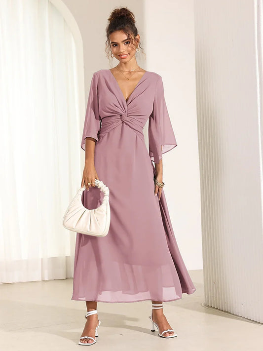 Twisted Ruffle Chiffon Maxi Dress