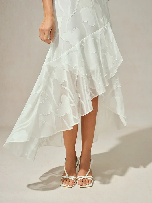 Floral Chiffon Evening Gown with Asymmetrical Hem