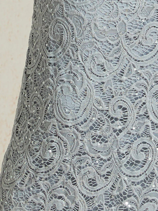 Sleeveless Glitter Lace Satin A-Line Dress with Silver Glitter