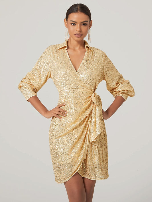 3/4 Sleeve Knee-Length Chiffon Dress with Rhinestone