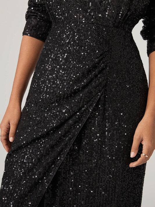 Black Sequins Puff Sleeve Maxi Dress with Empire Waist