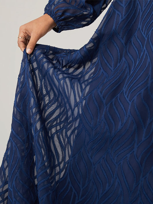 Asymmetrical Ruffle V Neck Navy Blue Maxi Dress