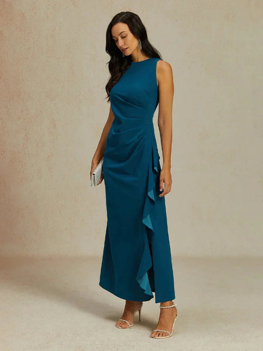 Elegant Formal Dress with Embellished Flutter Sleeves
