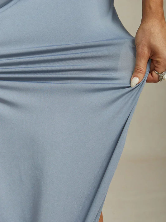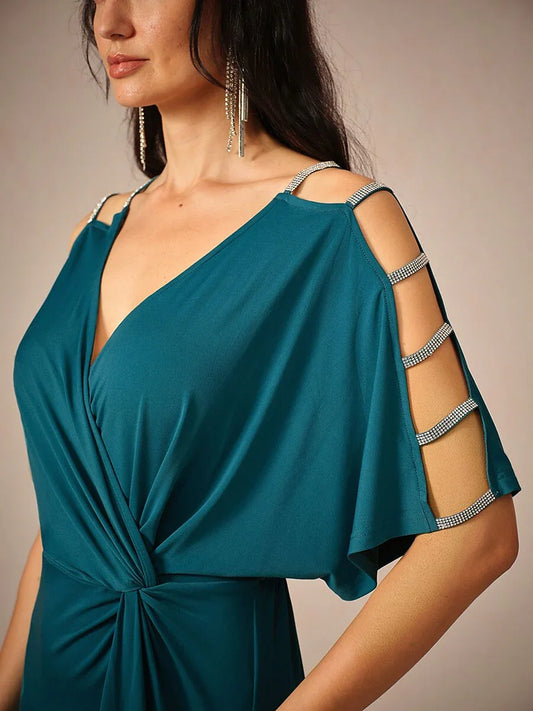 Stretch Knot Front Dress with Front Slit & Embellished Sleeve Cutouts