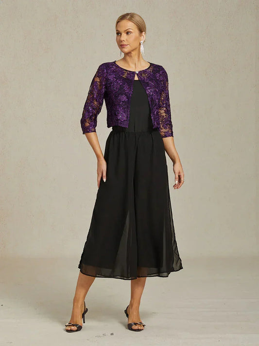 Elegant Knee-Length Lace Dress With Sheer Chiffon Jacket