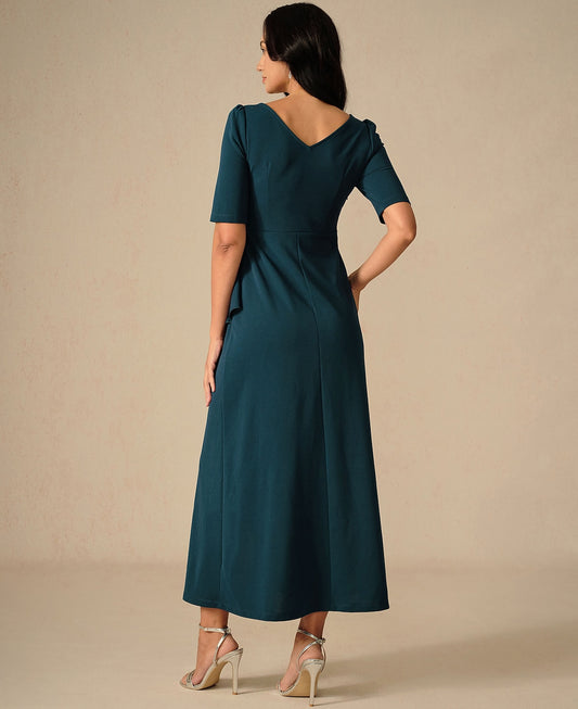 Elegant Formal Dress with Embellished Flutter Sleeves