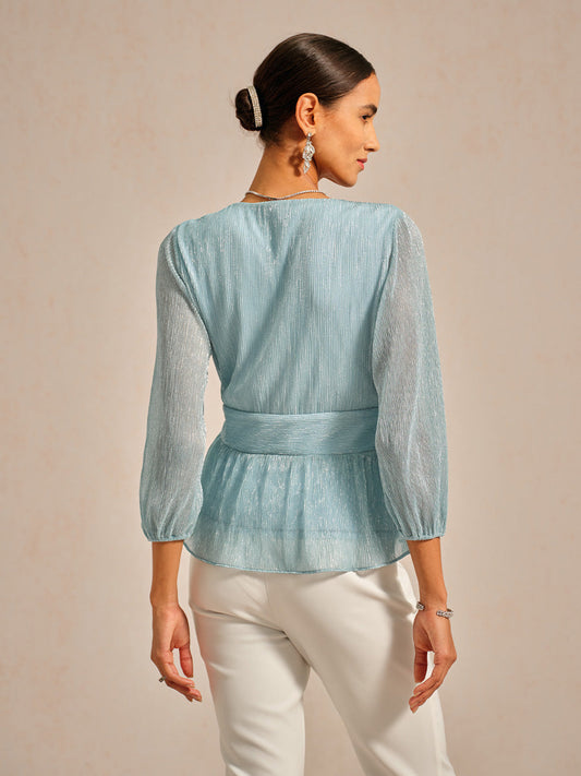Elegant Stretch Velvet Peplum Blouse with Rhinestone Details