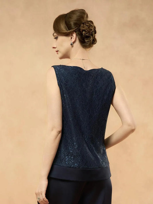 Satin Lace Tank Top with Rhinestones