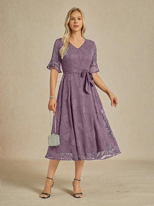 Elegant Lace and Chiffon Tea-Length Dress