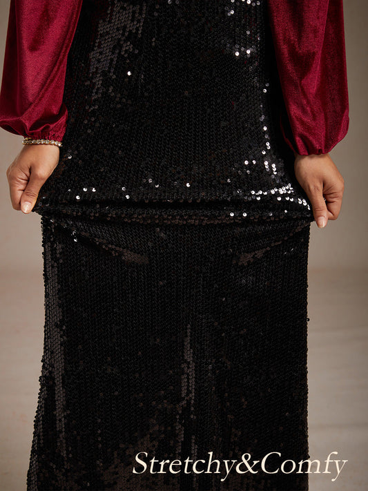 Sequin Mermaid Skirt with Elastic Waist and Lining