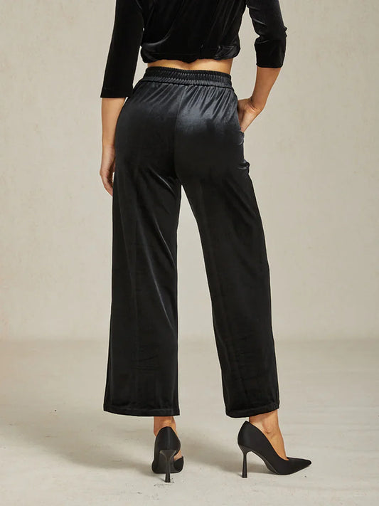 Black Slim Leg Pant with Elastic Waist and Side Pockets