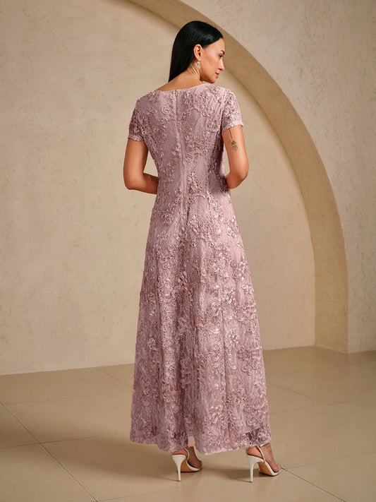 Rosette Lace A-Line Gown with Sequin Embellishment
