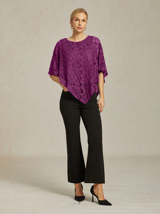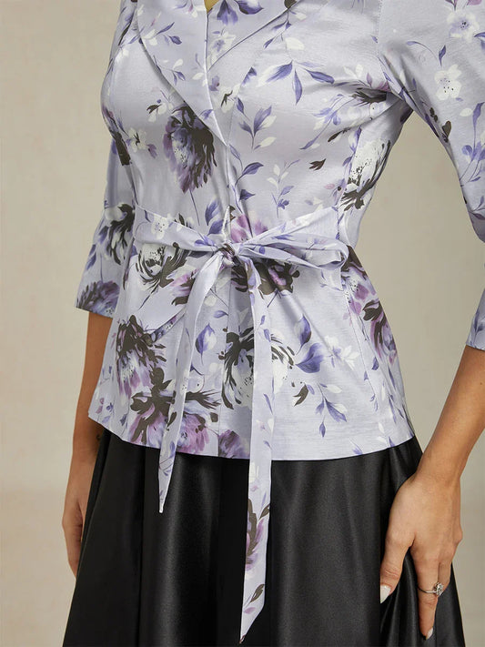 3/4 Sleeve Stretch Taffeta Blouse with Tie Waist Detail