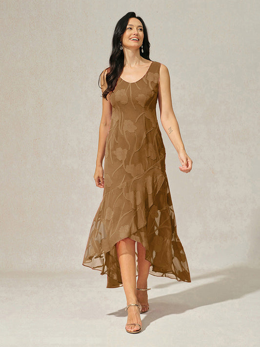 Floral Sheer Chiffon Knee-Length A Line Dress