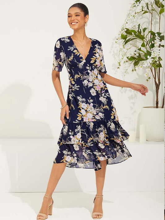 Floral Sheer Chiffon Knee-Length A Line Dress