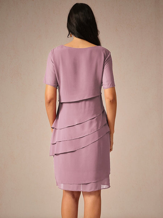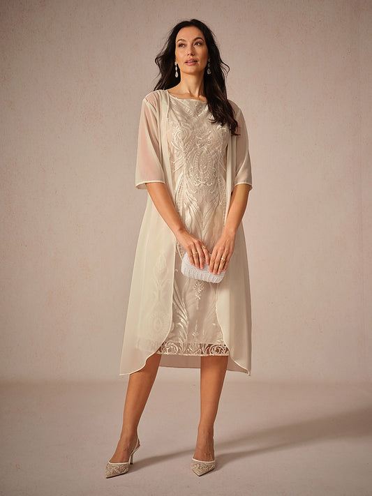 3/4 Sleeve Knee-Length Chiffon Dress with Rhinestone