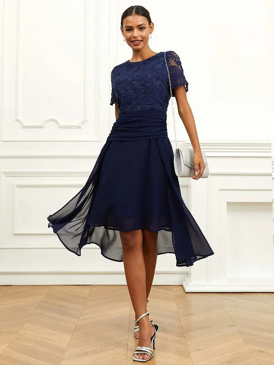 Elegant Knee-Length Lace Dress With Sheer Chiffon Jacket
