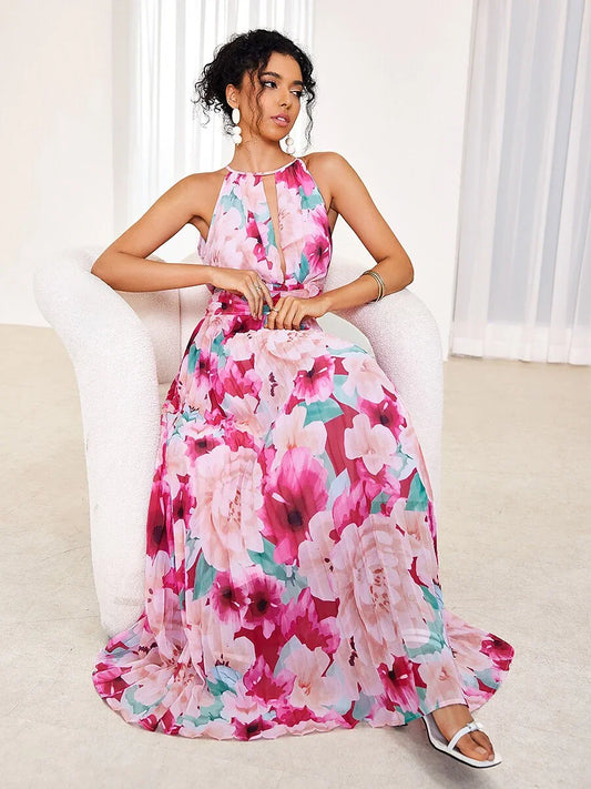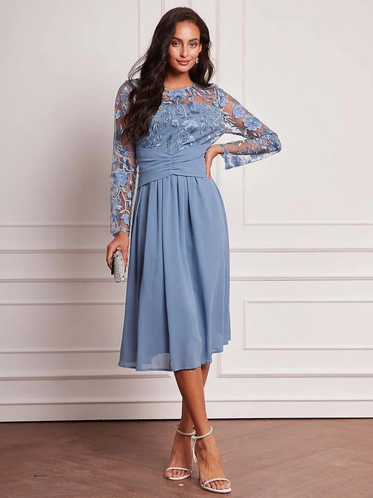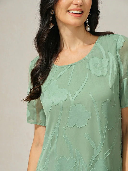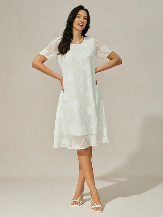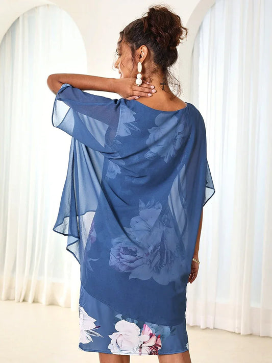 Floral Sheer Chiffon Knee-Length A Line Dress