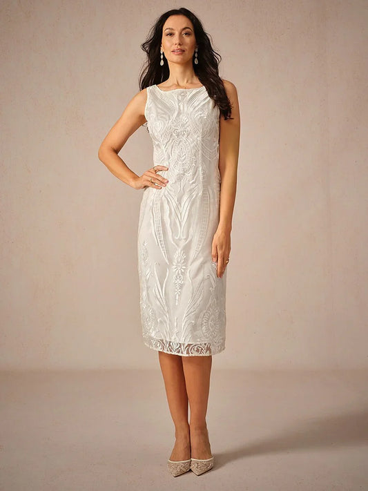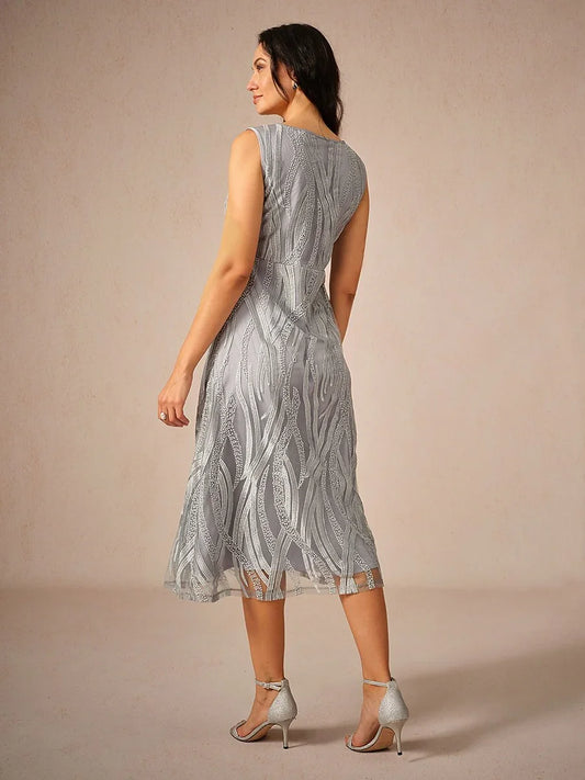 3/4 Sleeve Knee-Length Chiffon Dress with Rhinestone