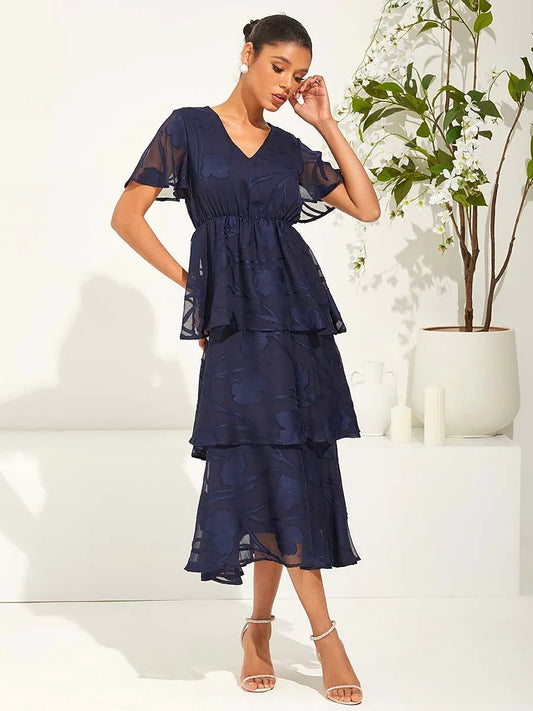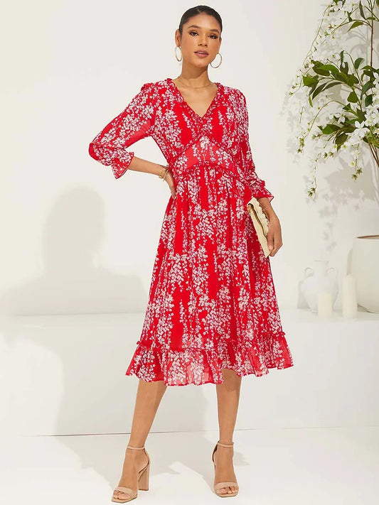 Vacation Ruffle Chiffon V-Neck Maxi Dress