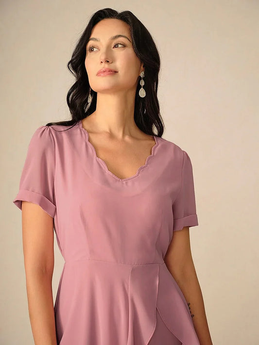Asymmetrical Hem Crew Neck Chiffon Midi Dress