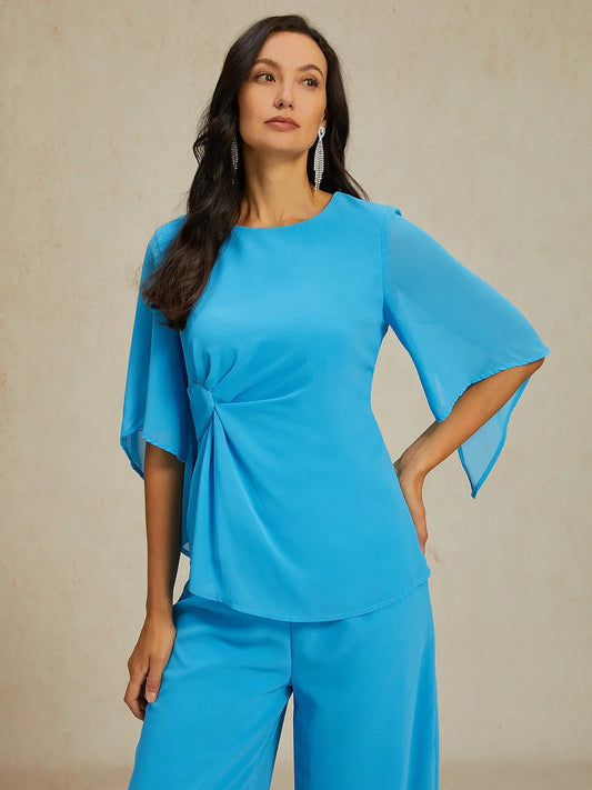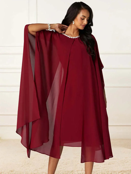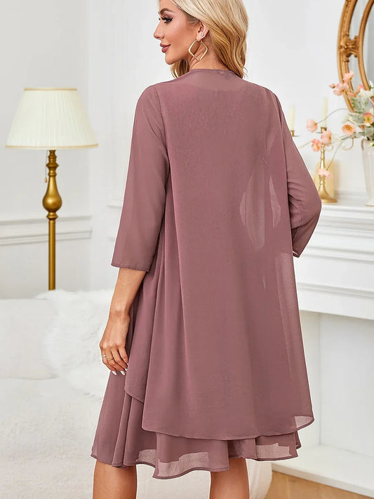 3/4 Sleeve Knee-Length Chiffon Dress with Rhinestone