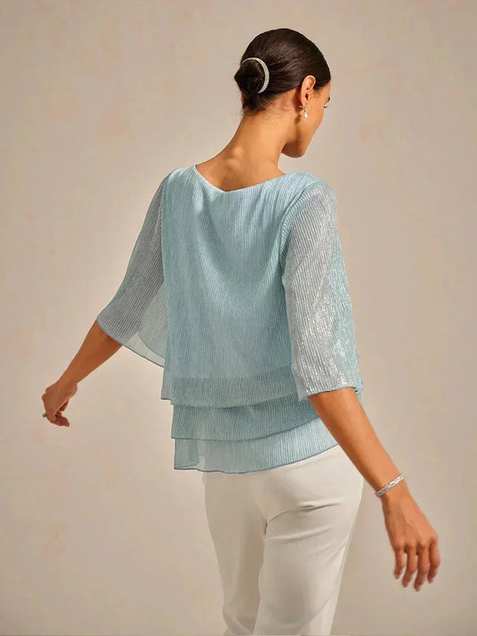 Metallic Pleated Chiffon Asymmetrical Layered Blouse