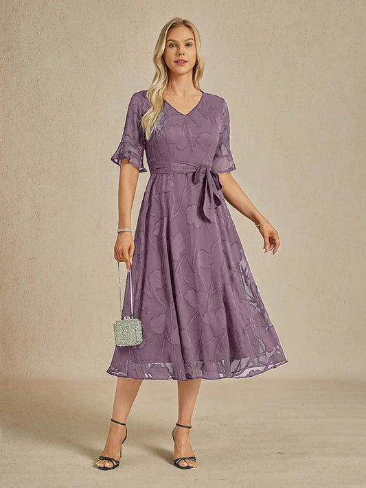 Elegant Lace and Chiffon Tea-Length Dress
