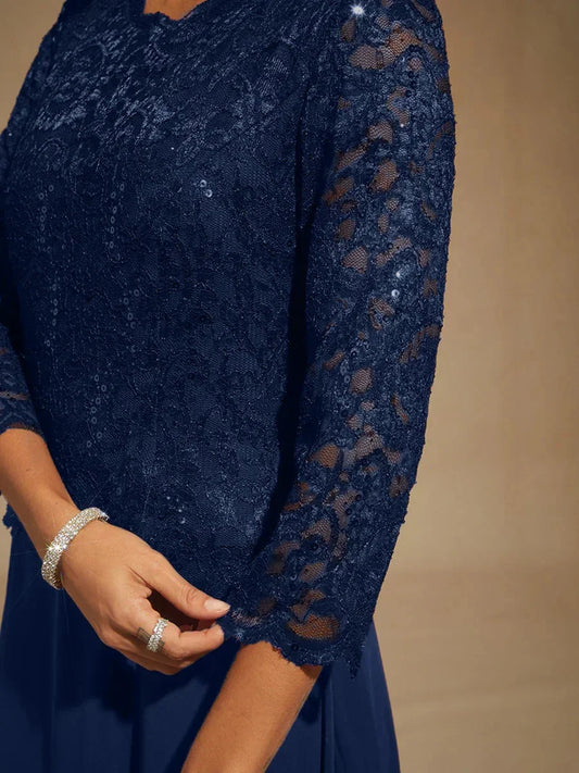 Rosette Lace A-Line Gown with Sequin Embellishment