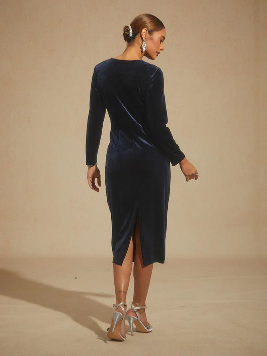 High-Stretch Velvet Sleeveless Midi Dress with Cowl Neck