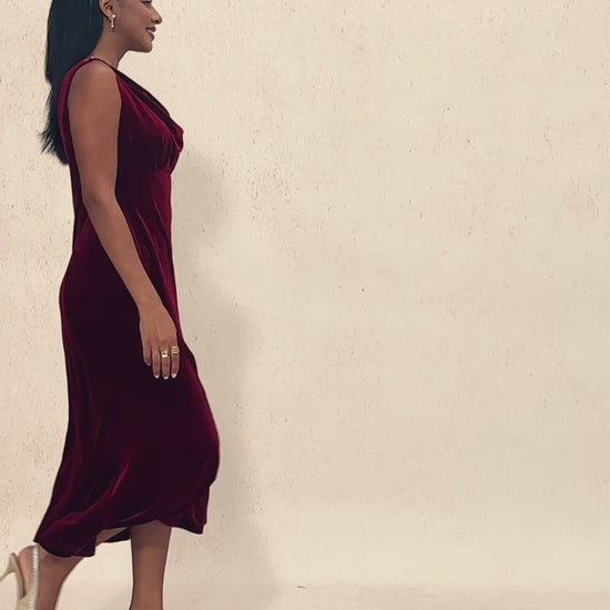 This velvet dress feels amazing on and looks so elegant. The fit is comfortable, and the fabric has a beautiful shine.