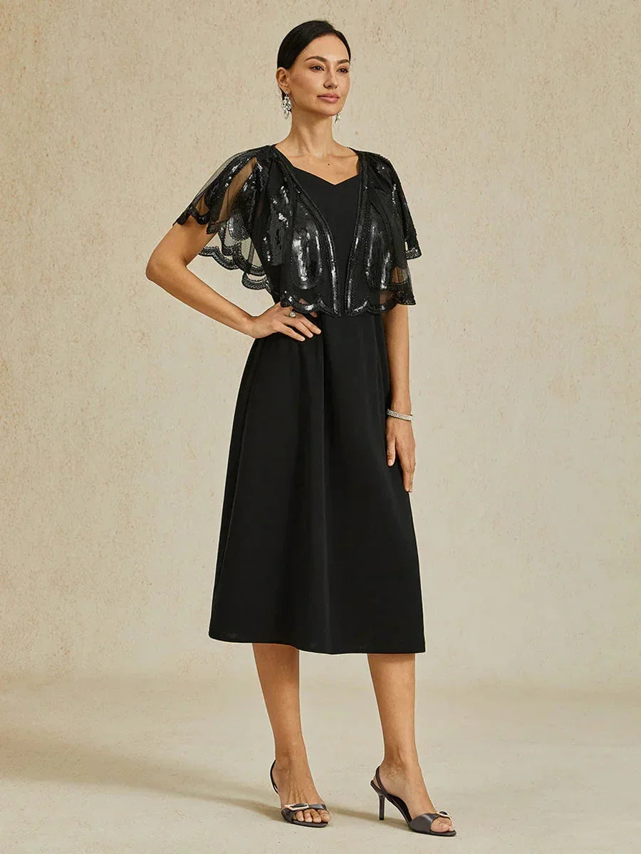Sequin Knee Length V Neck Overlay Dress