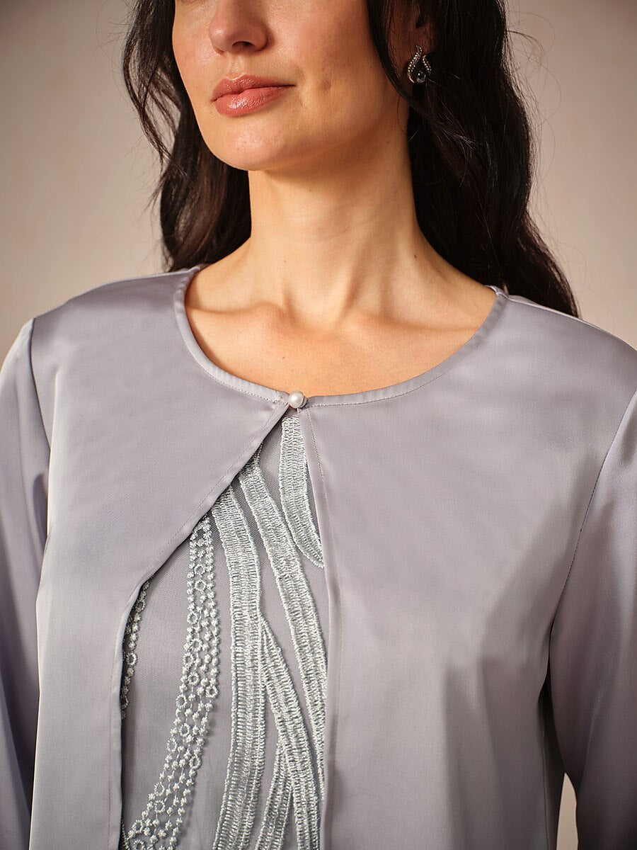 Silver Glitter Lace Jacket with 3/4 Sleeves
