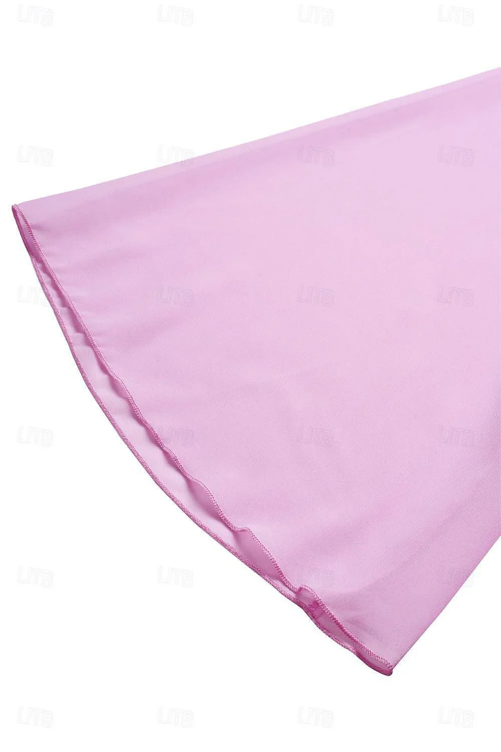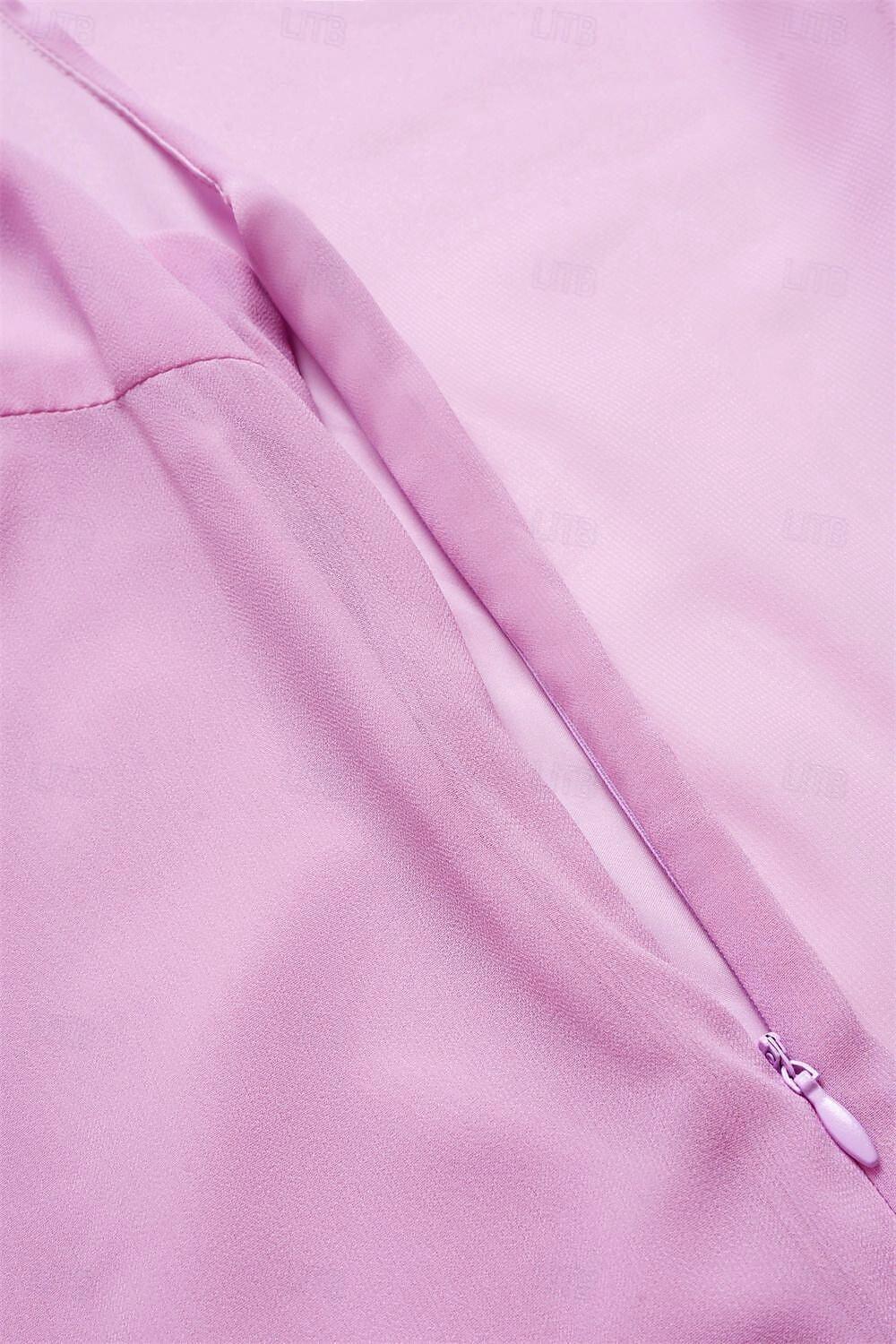 This vintage, elegant chiffon dress features a flattering crew neck and delicate flutter sleeves. The ruffle details and asymmetrical, tiered design add movement and grace, creating a flowy, feminine silhouette. Perfect for sophisticated events, the soft chiffon fabric enhances its timeless, elegant style.