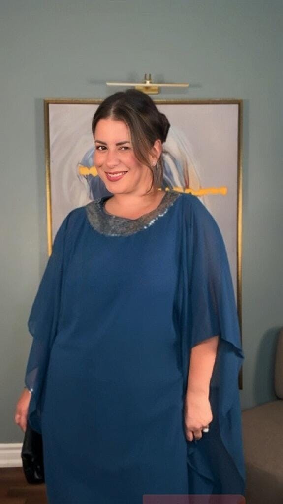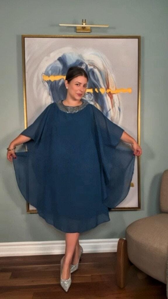 I felt like a movie star! The beaded neckline catches the light beautifully. It’s true to size and the loose fit is so easy to wear. A dream!