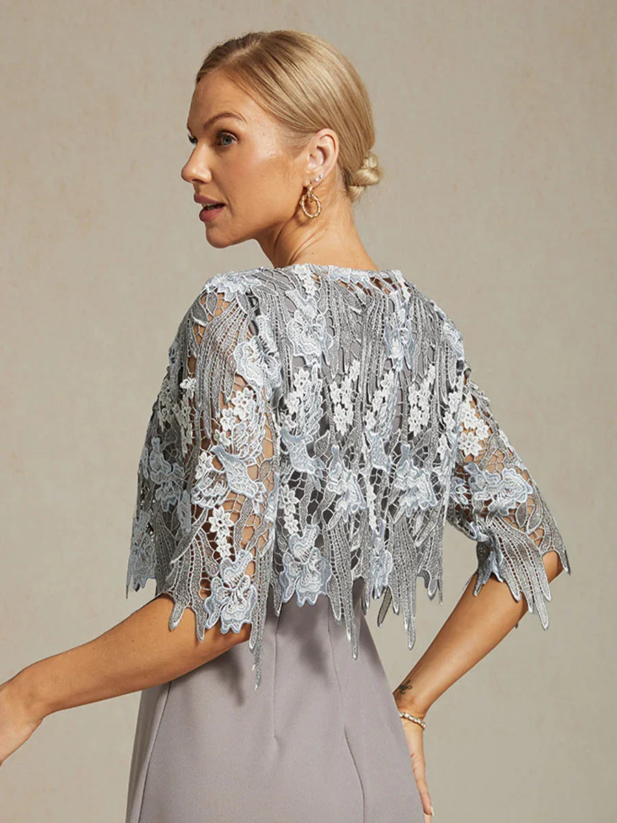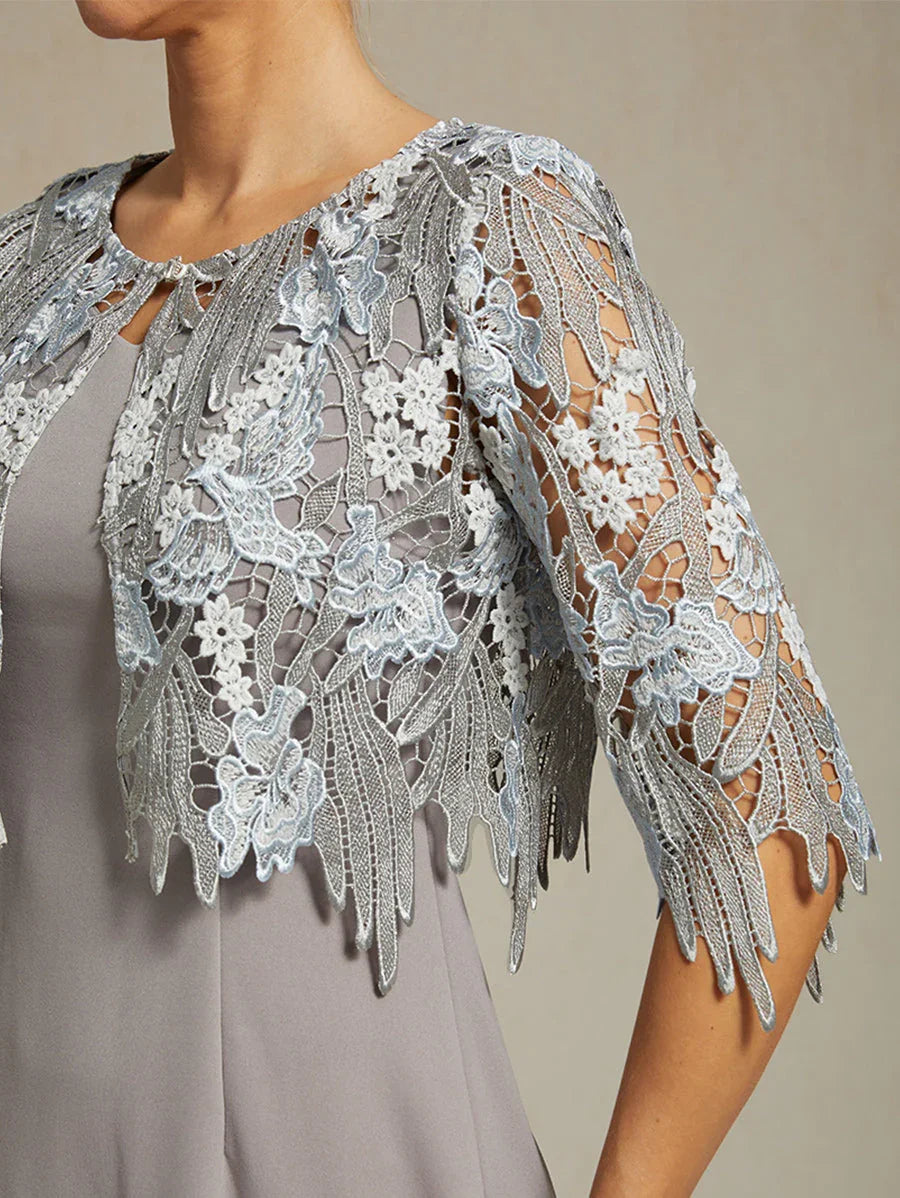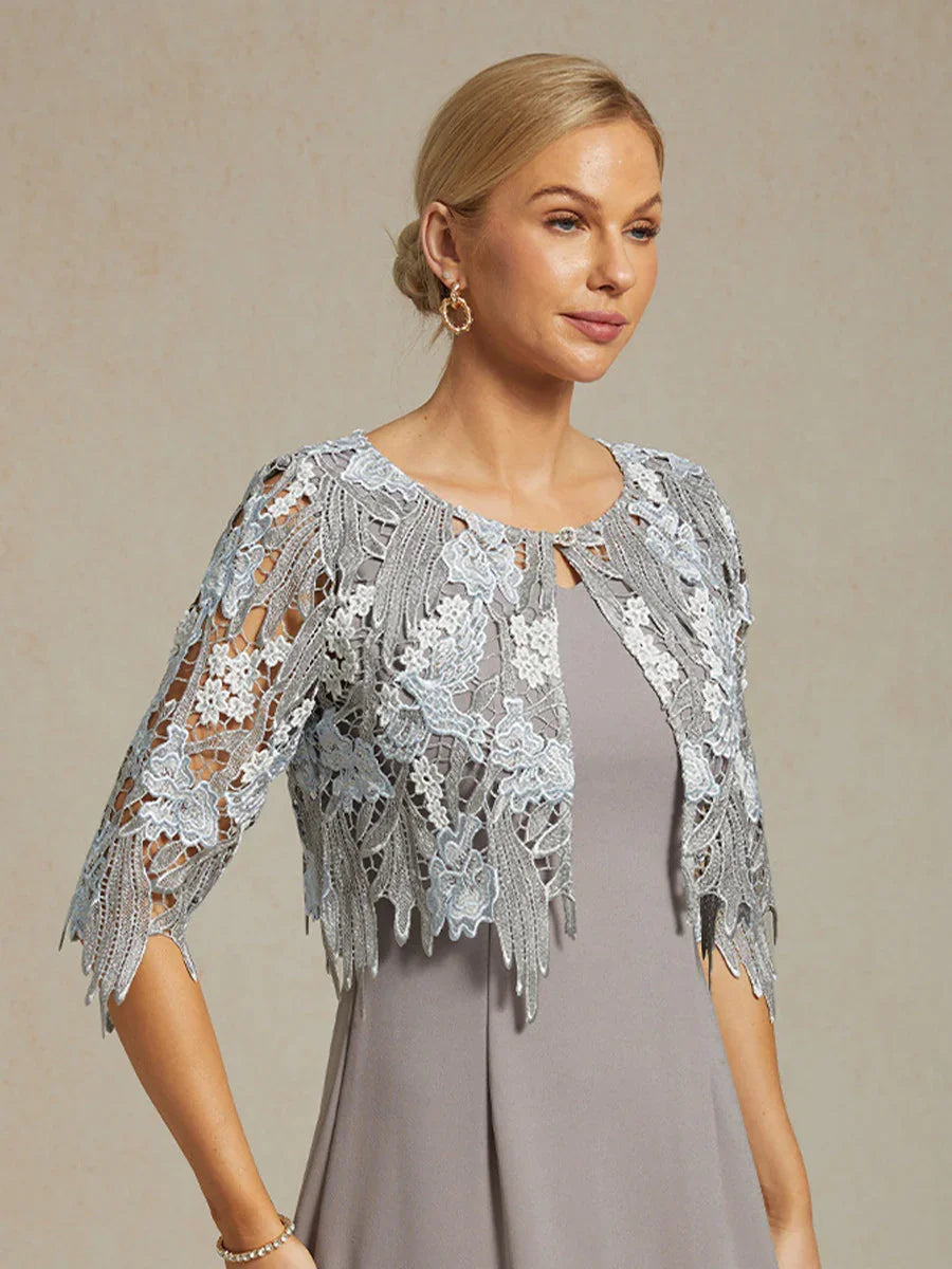 Silver Glitter Lace Jacket with 3/4 Sleeves