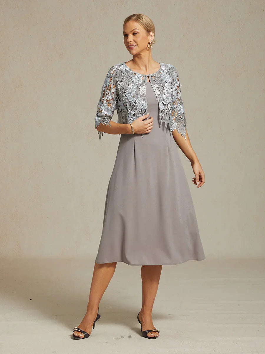 Sleeveless Glitter Lace Satin A-Line Dress with Silver Glitter