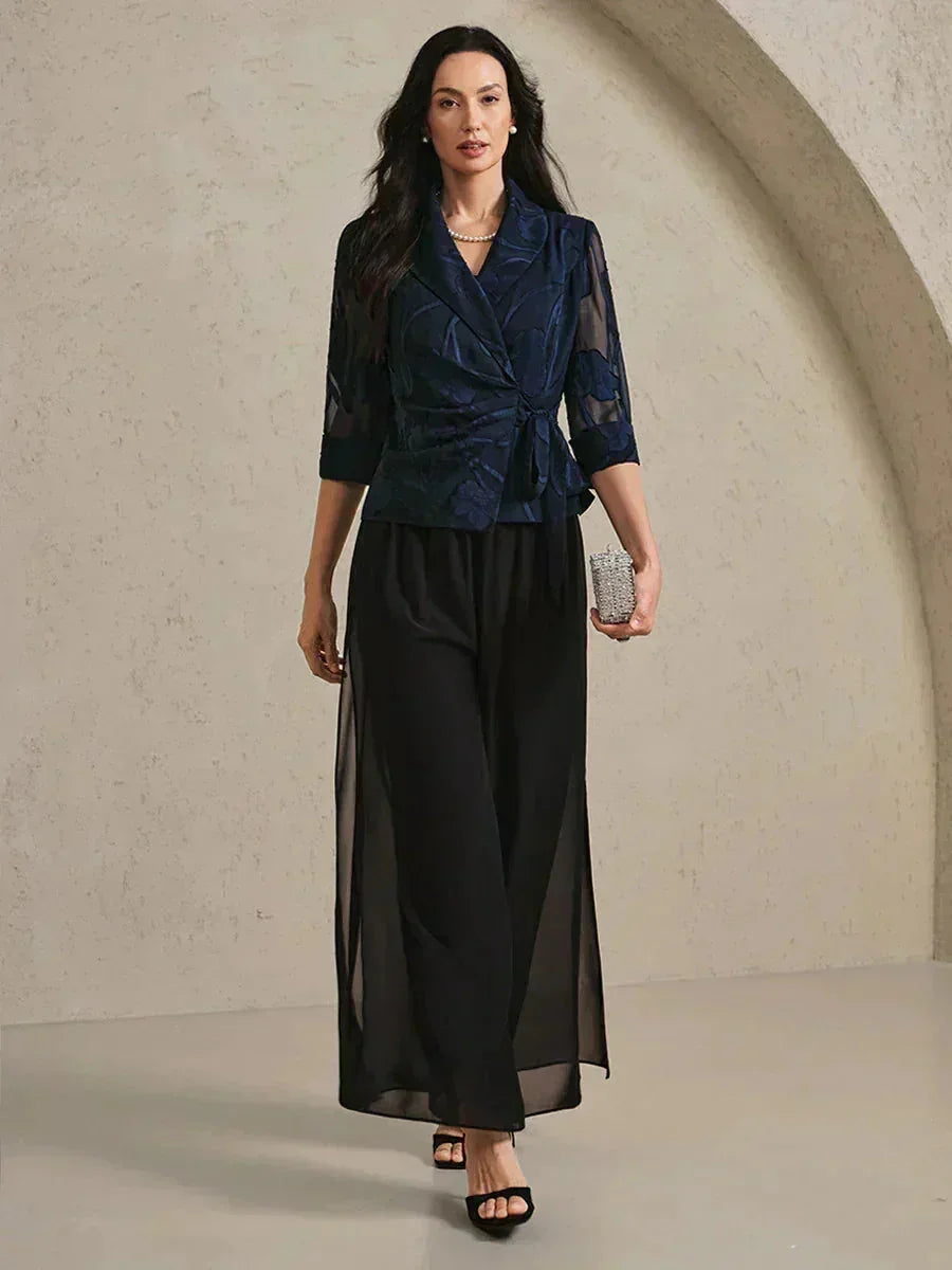 Effortlessly elegant, this floral chiffon blouse is designed with soft tailoring and romantic details. Featuring a classic collar and open front, it ties gracefully at the waist for a flattering fit. The 3/4 sleeves add balance and light coverage, while the airy chiffon drapes beautifully over the body. Ideal for the modern woman who wants to look polished at work without sacrificing femininity.