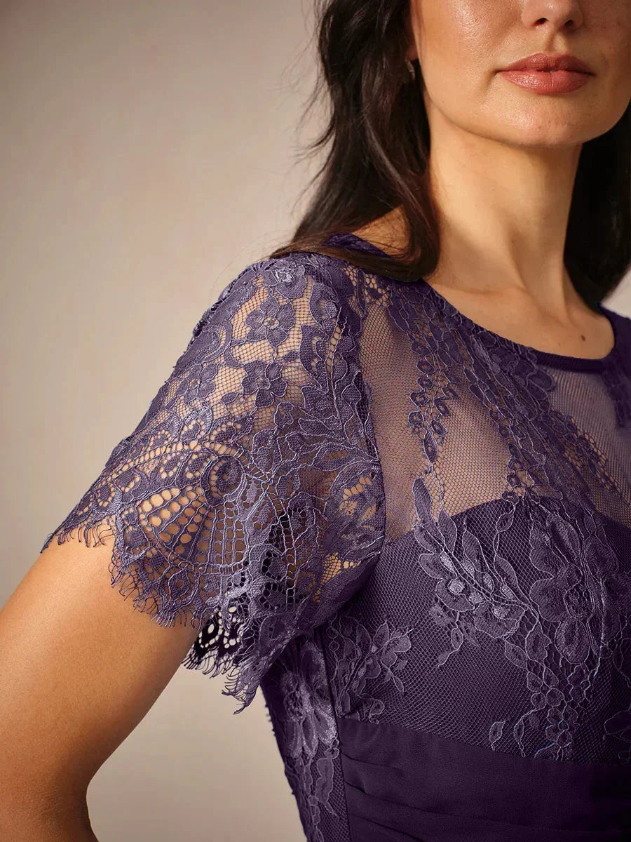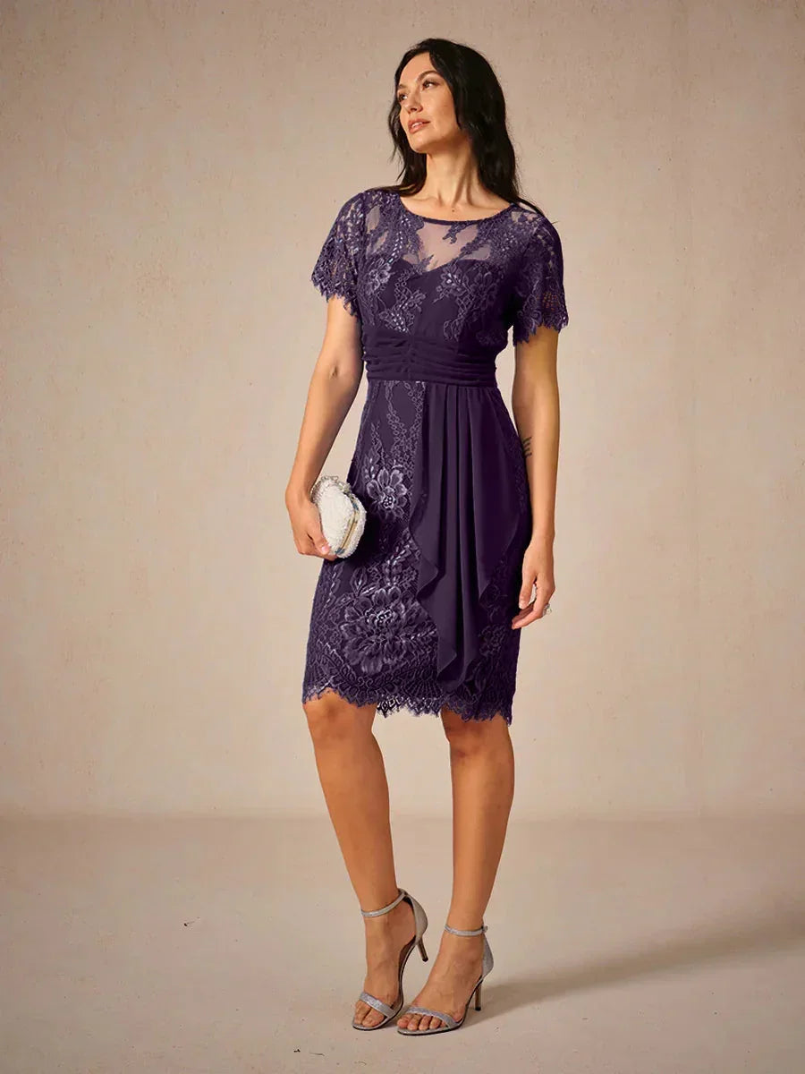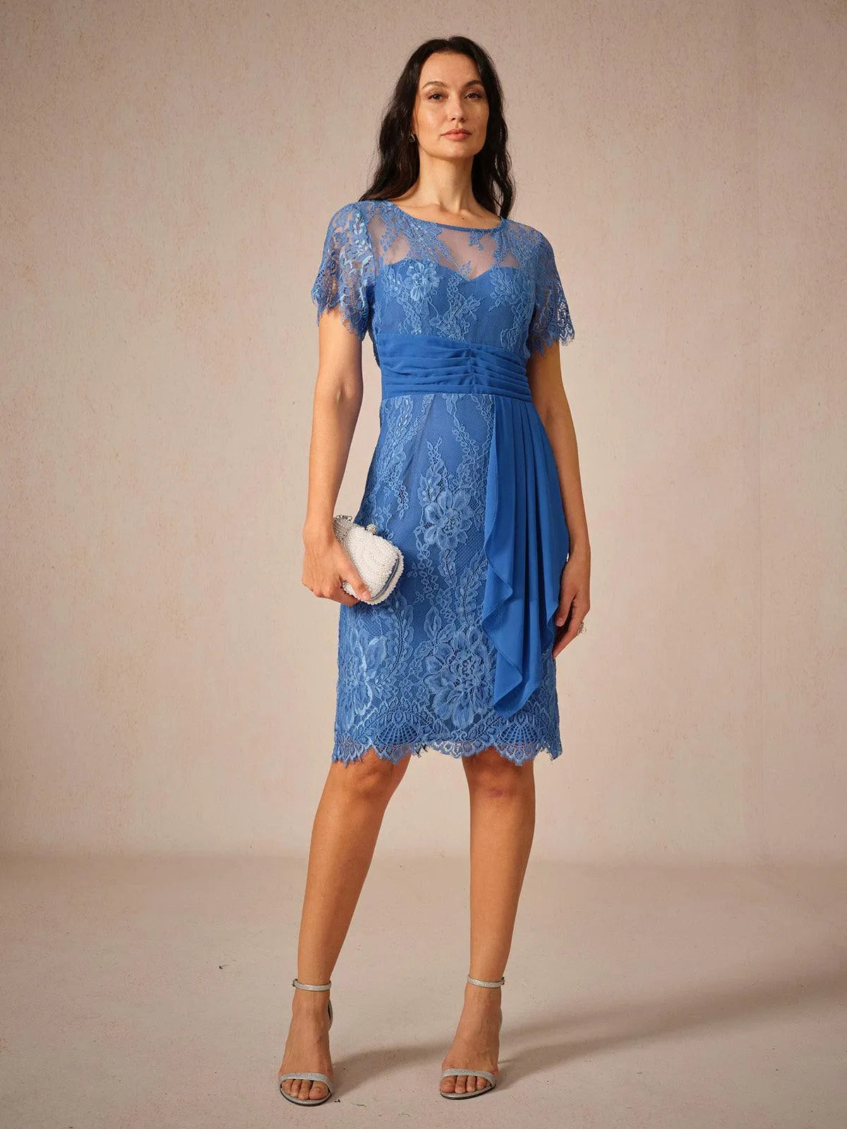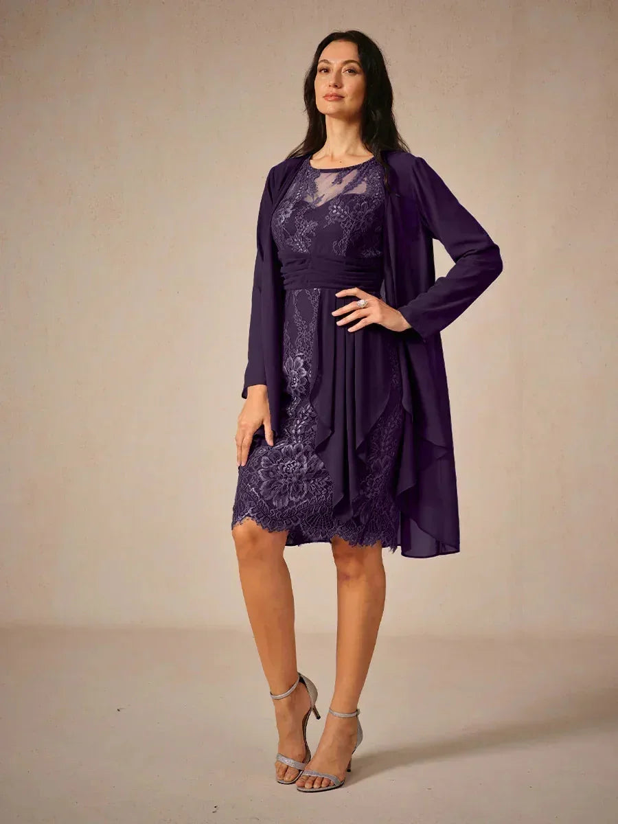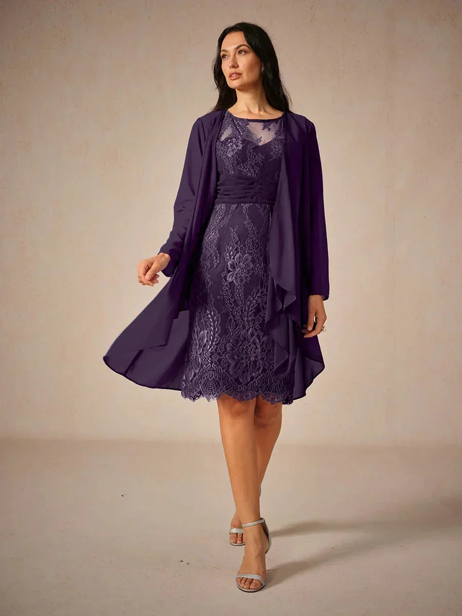 Elegant Knee-Length Lace Dress With Sheer Chiffon Jacket