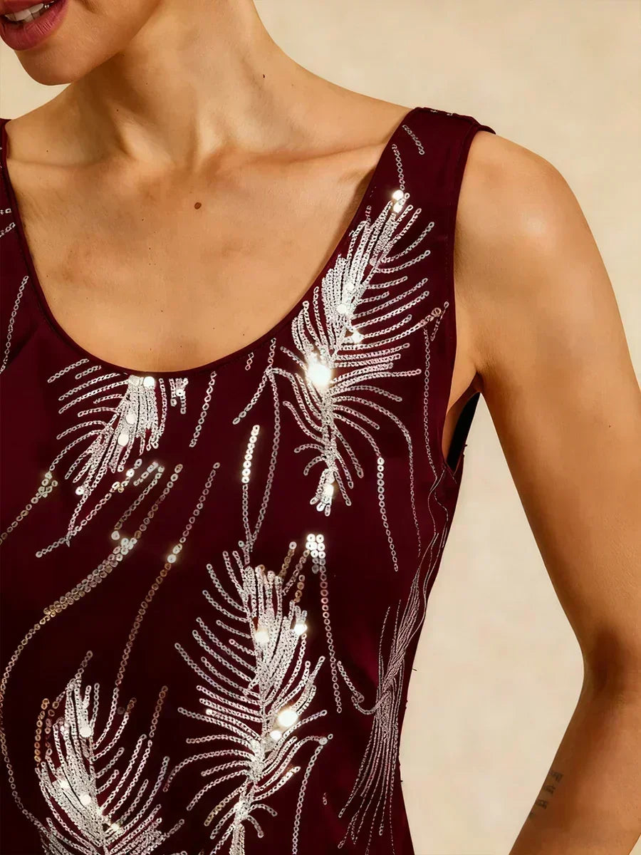 Elegant V-Neck Cold Shoulder Sequin Dress