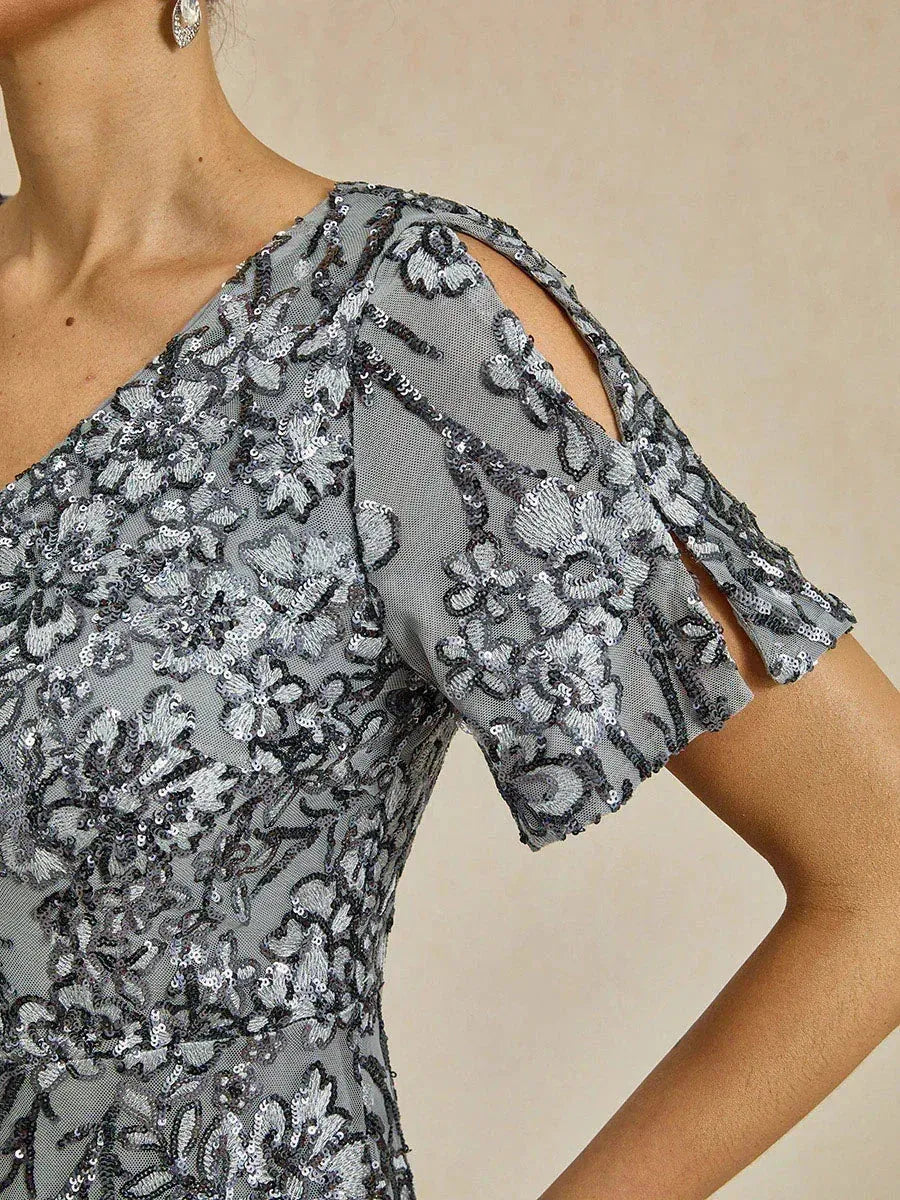 Elegant V-Neck Cold Shoulder Sequin Dress