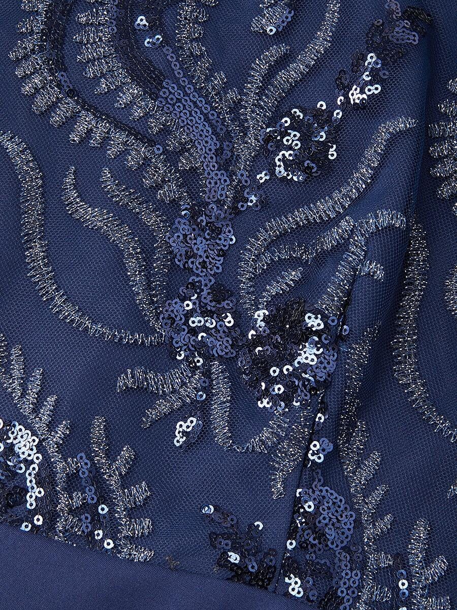 Navy Sequins Mesh Midi Dress