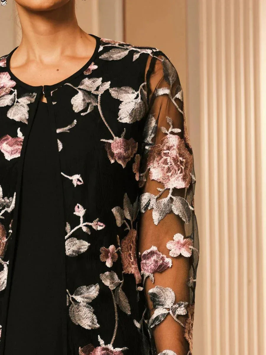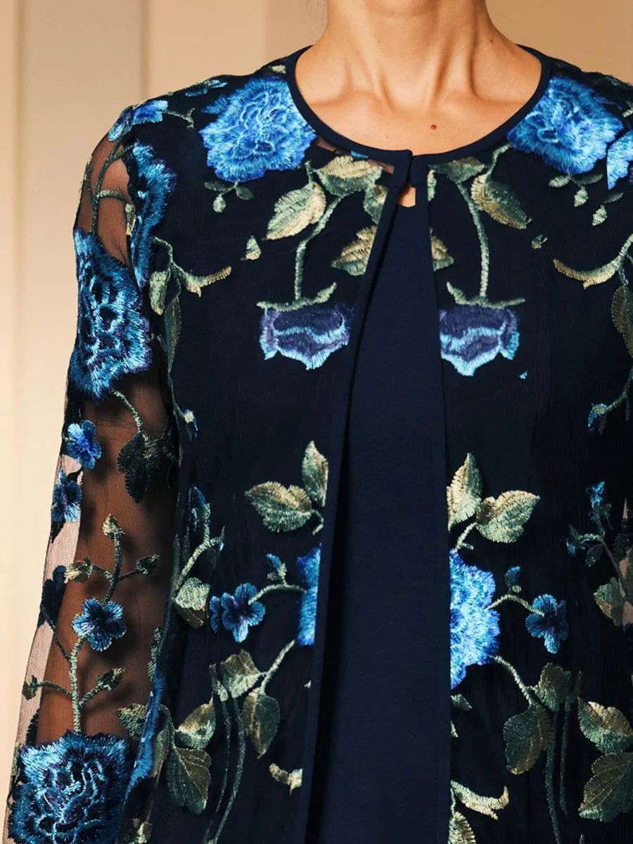 Chic Embroidered Lace Jacket with Rhinestone Button