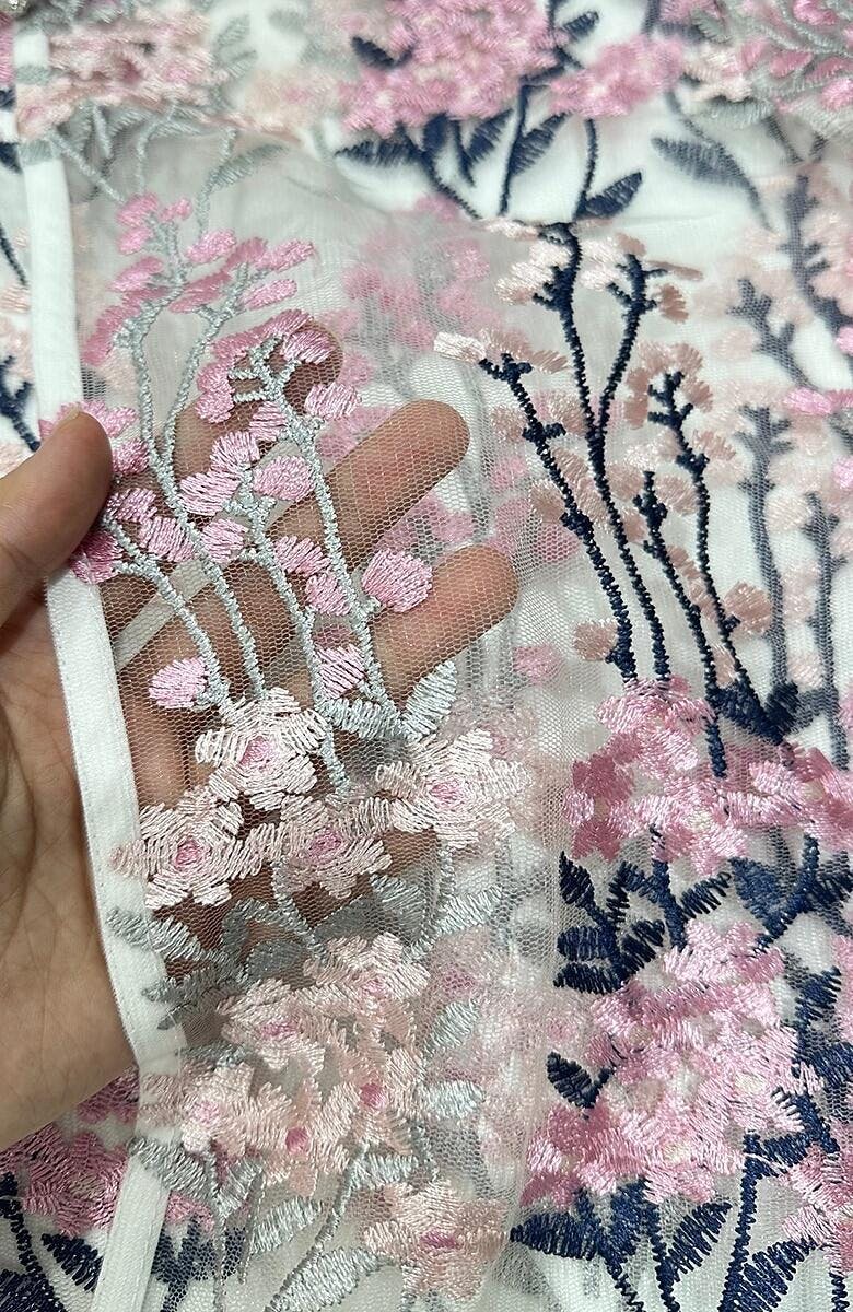 - Fabric : Embroidered tulle, sheer mesh, soft texture, lightweight fabric, breathable feel