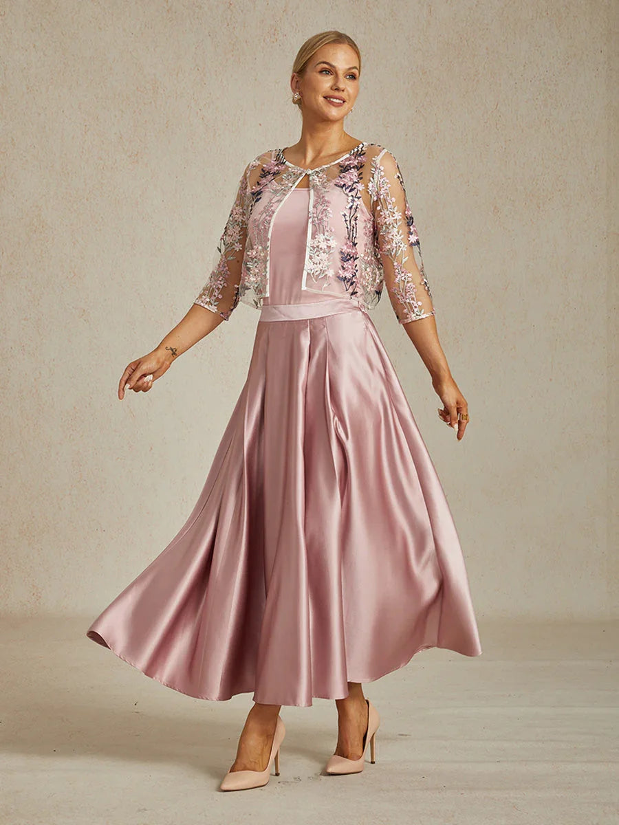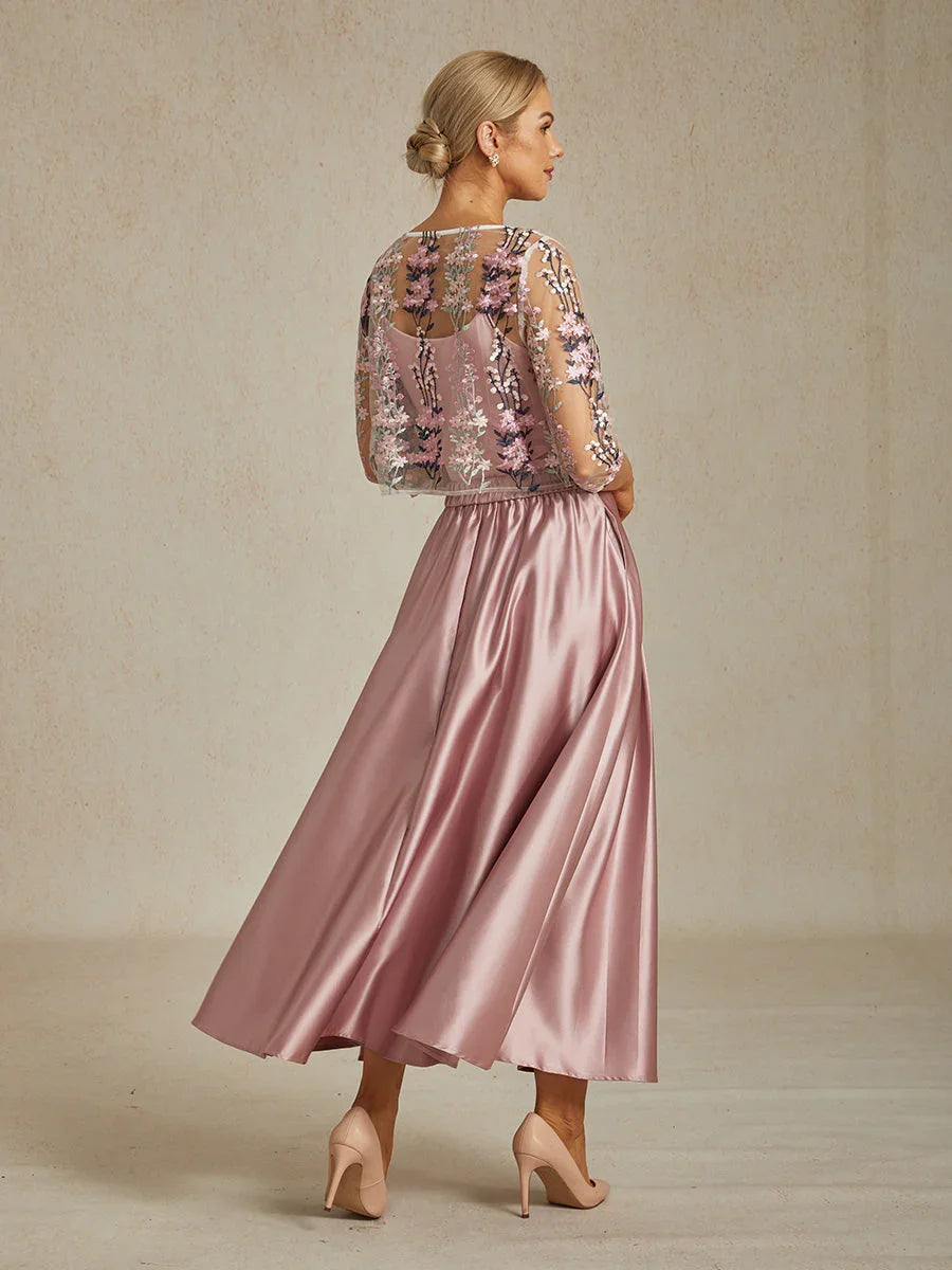 Elegant Lace and Chiffon Tea-Length Dress