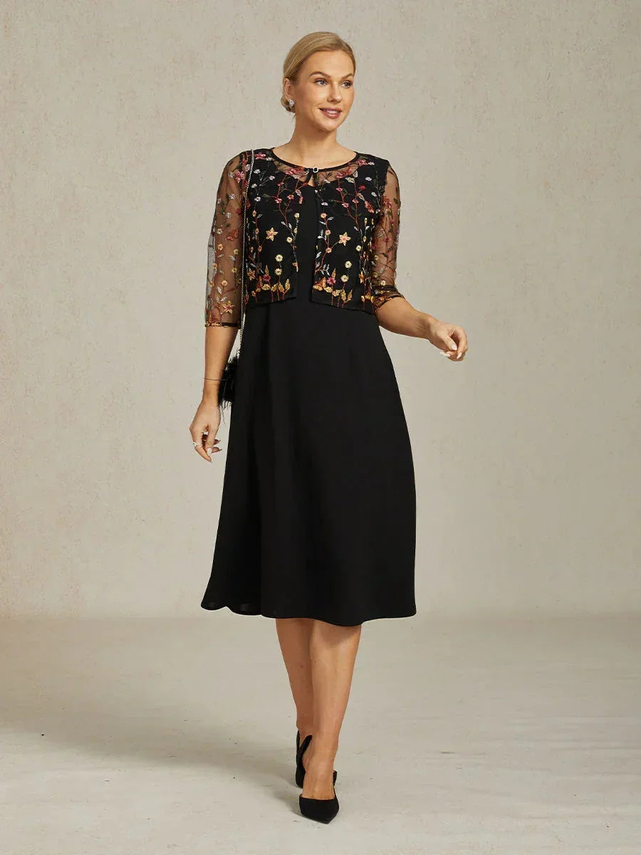 This elegant floral embroidered lace jacket features delicate rhinestone clasp closure and flattering 3/4 sleeves. Its short length and intricate floral embroidery make it versatile to pair with dresses or separates. Perfect for wedding guests, cocktail parties, or any understated occasion. Also suitable for everyday wear for a touch of refined style.